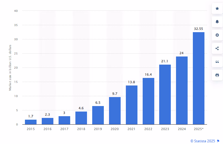 En 2025, ce chiffre devrait dépasser les 32 milliards de dollars.
